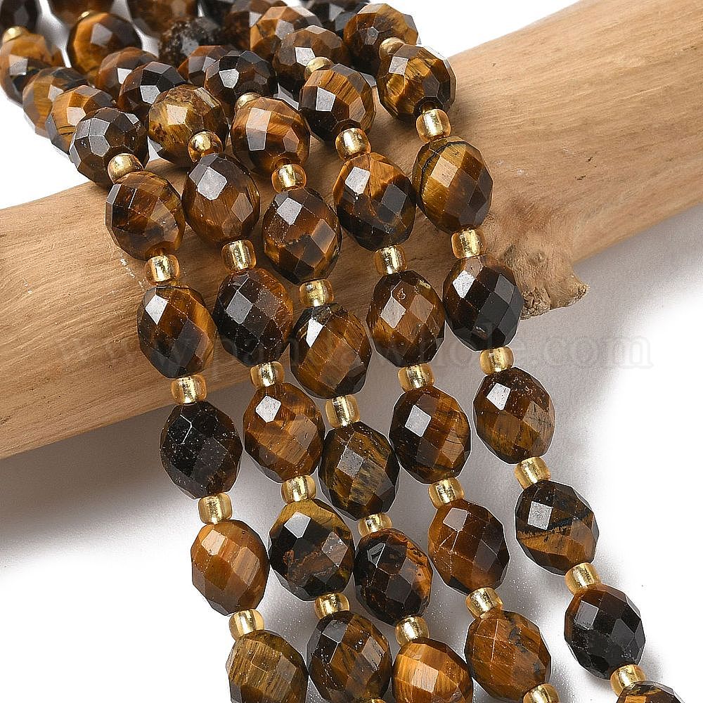 Природных тигровый глаз бисер нитей, граненые, рис, с бисером