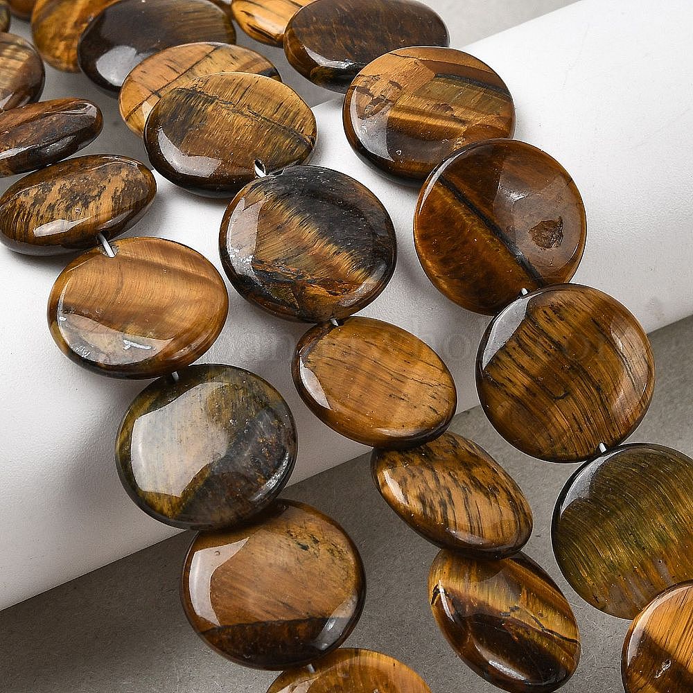 Природных тигровый глаз бисер нитей, плоско-круглые