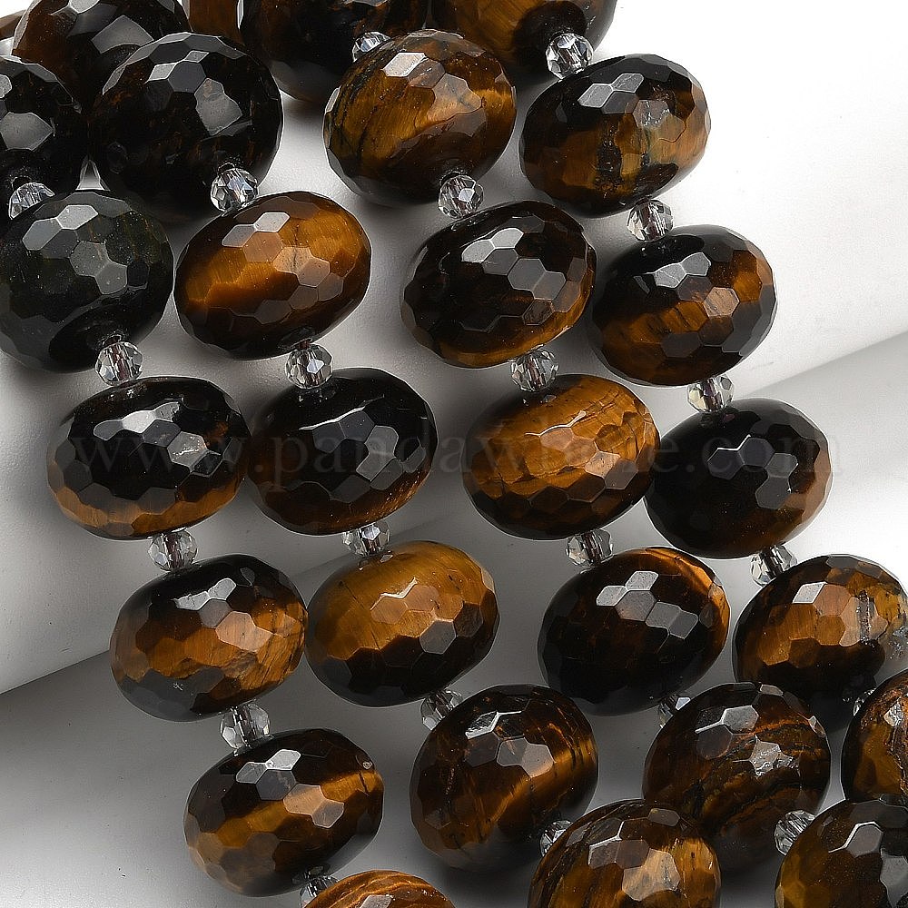 Природных тигровый глаз бисер нитей, рондель, граненые, со стеклянными бусинами