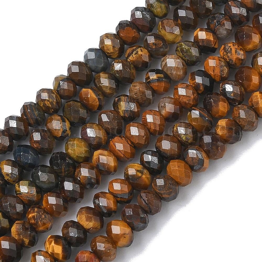 • Тигровый глаз Природных тигровый глаз бисер нитей, рондель, граненые, рондель, 4~4.5x3 мм, отверстие : 0.6 мм, около 130 шт / нитка, 15.39'' (39.1 см)