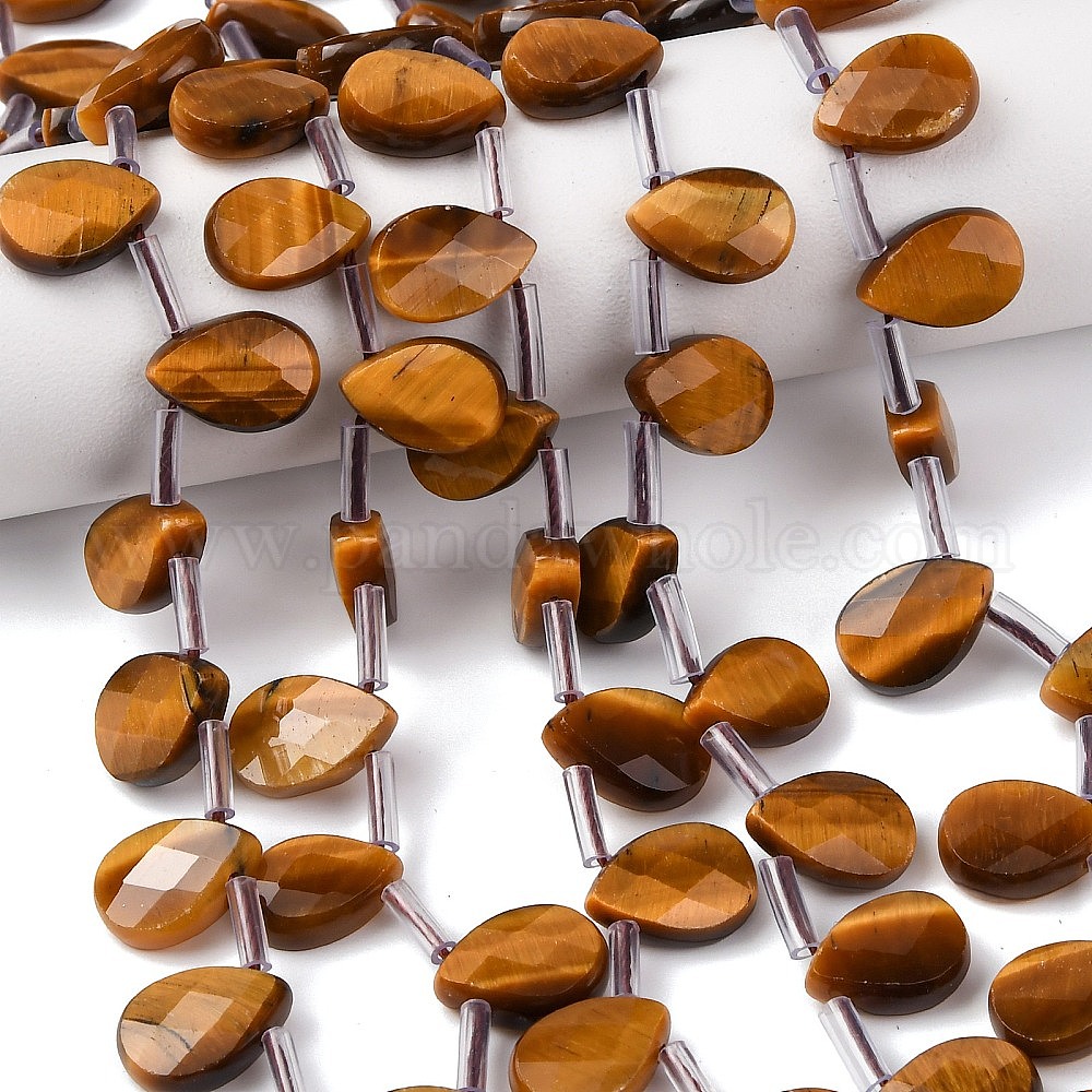 Природных тигровый глаз бисер нитей, Грановитая Teardrop, Топ пробуренной, с пластиковыми трубчатыми бусинами