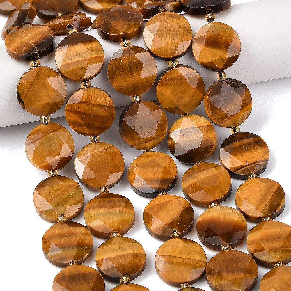 Природных тигровый глаз бисер нитей, плоско-круглые, граненый шестиугольный разрез, с бисером