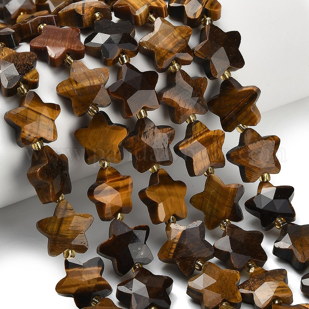 • Тигровый глаз Природных тигровый глаз бисер нитей, звезда, граненые, с бисером, 14~14.5x14.5~15x6~6.5 мм, отверстие : 1~1.2 мм, около 26 шт / нитка, 14.96~15.63'' (38~39.7 см)