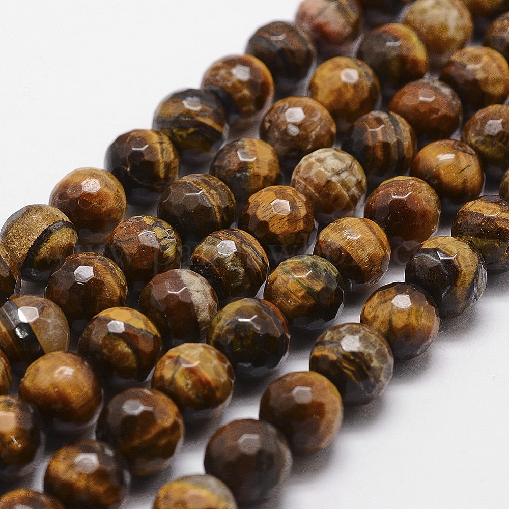 Природных тигровый глаз бисер нитей, класса AB, граненые, круглые