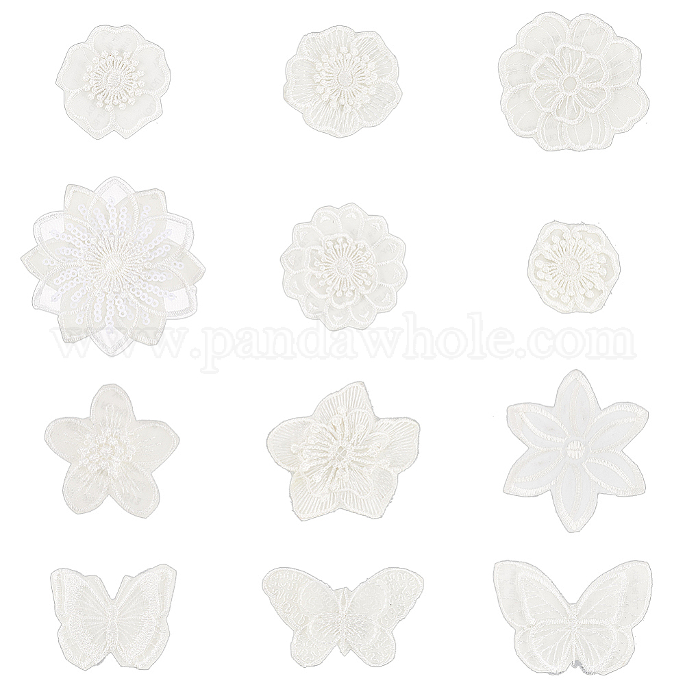 12шт 12 стиль компьютеризированной вышивки кружева самоклеющиеся/пришивные заплатки, аксессуары для костюма, аппликация, бабочки и цветы