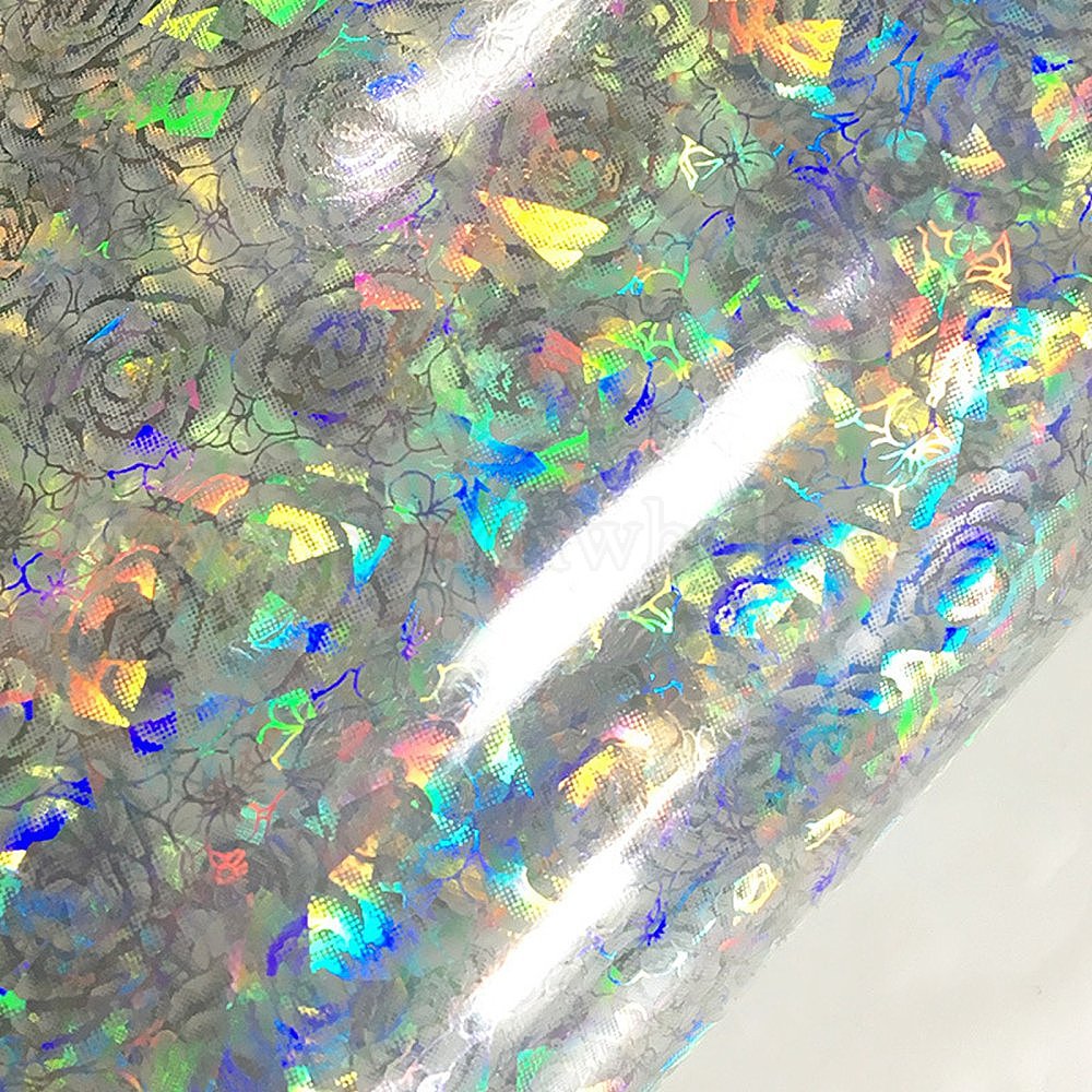 • Цветок Переливающаяся лазерная ПВХ-ткань, для кошелька, чемодан, швейное ремесло, роза, 30x0.05 см, около 2 м / рулон