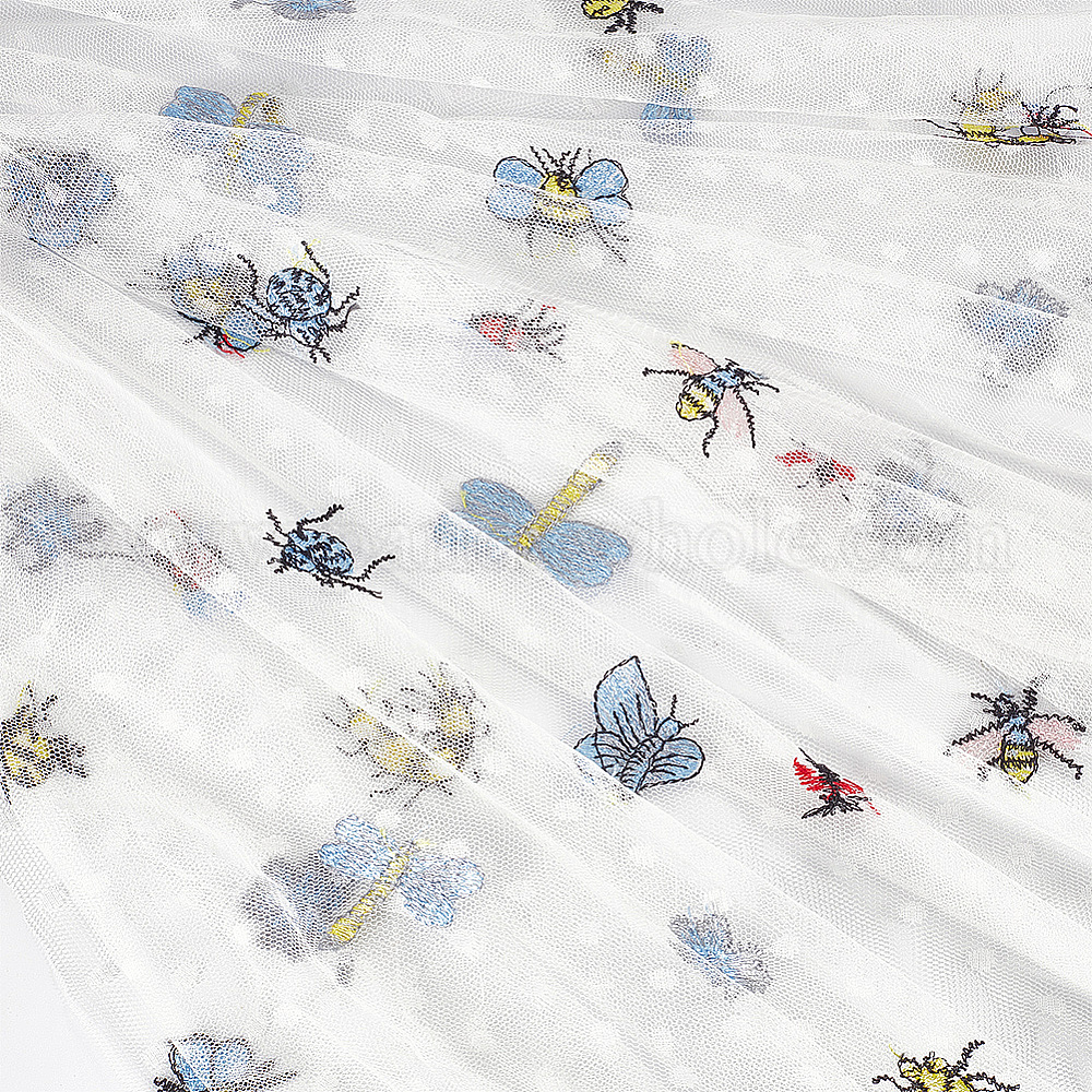 Ткань с вышитым полиэстеровым кружевом и рисунком насекомых для платья, одежда