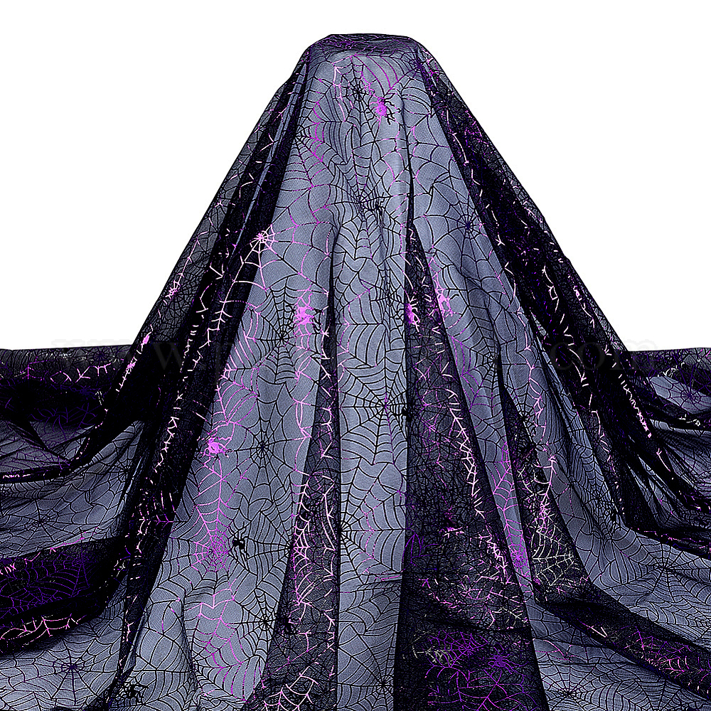 • Фиолетовый Полиэстеровая сетчатая ткань на тему Хэллоуина, аксессуары, шаблон паутины, фиолетовые, 1500 мм