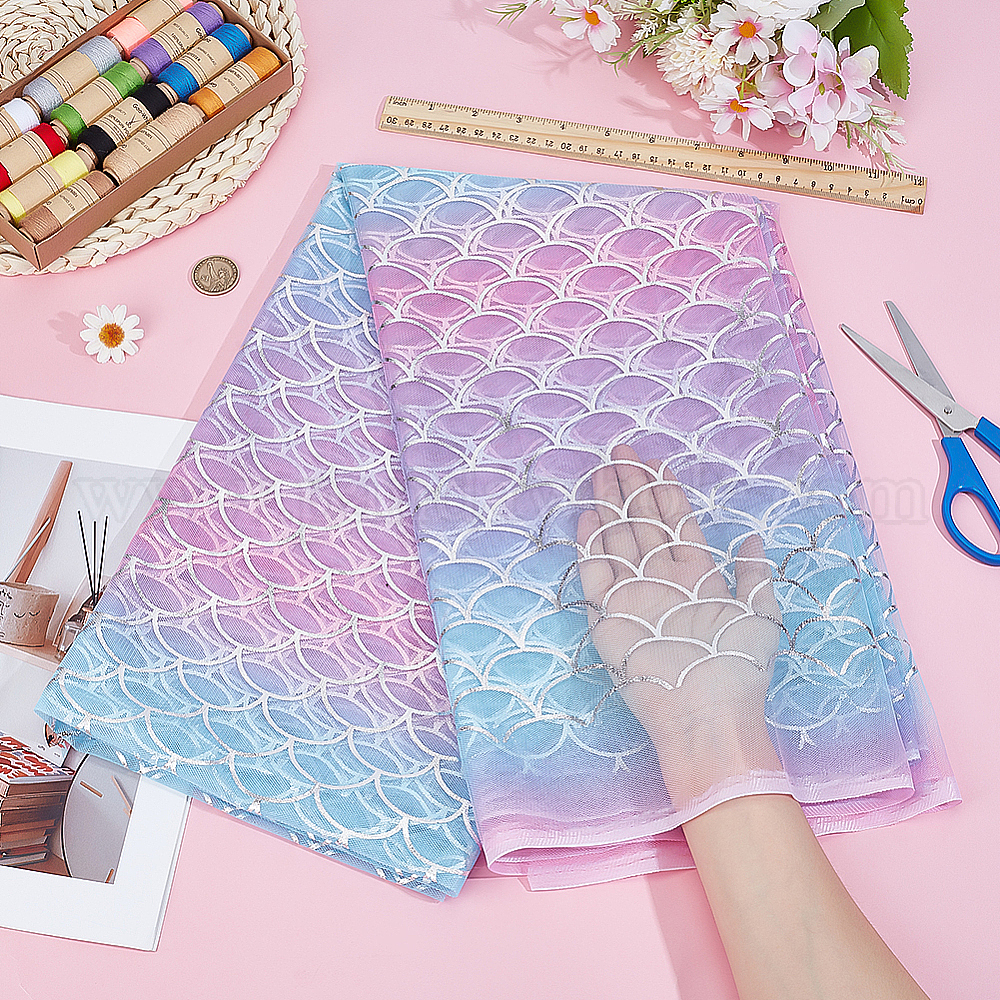 • Разноцветный Сетчатая ткань из полиэстера, аксессуары для одежды для свадебного платья, узор из рыбьей чешуи, красочный, 1170x0.1 мм