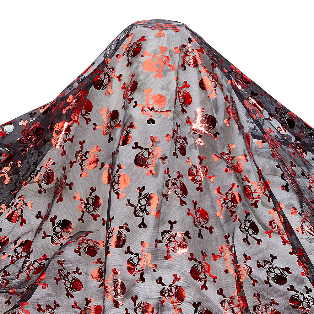• Красный Полиэстеровая сетчатая ткань для Хэллоуина, товары для поделок своими руками, прямоугольник с черепом рисунком, красные, 1600x0.1 мм