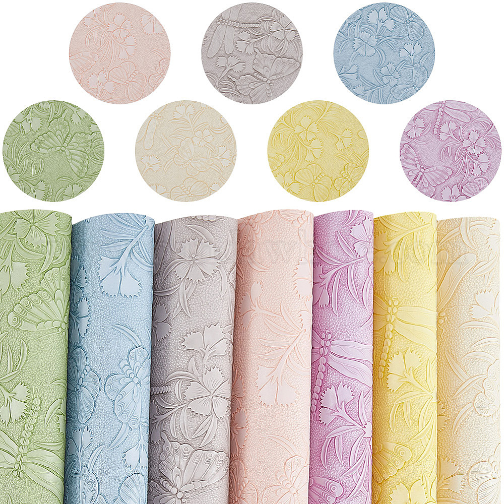 7шт. ткани из искусственной кожи, diy craft, прямоугольник с узором из бабочек и цветов