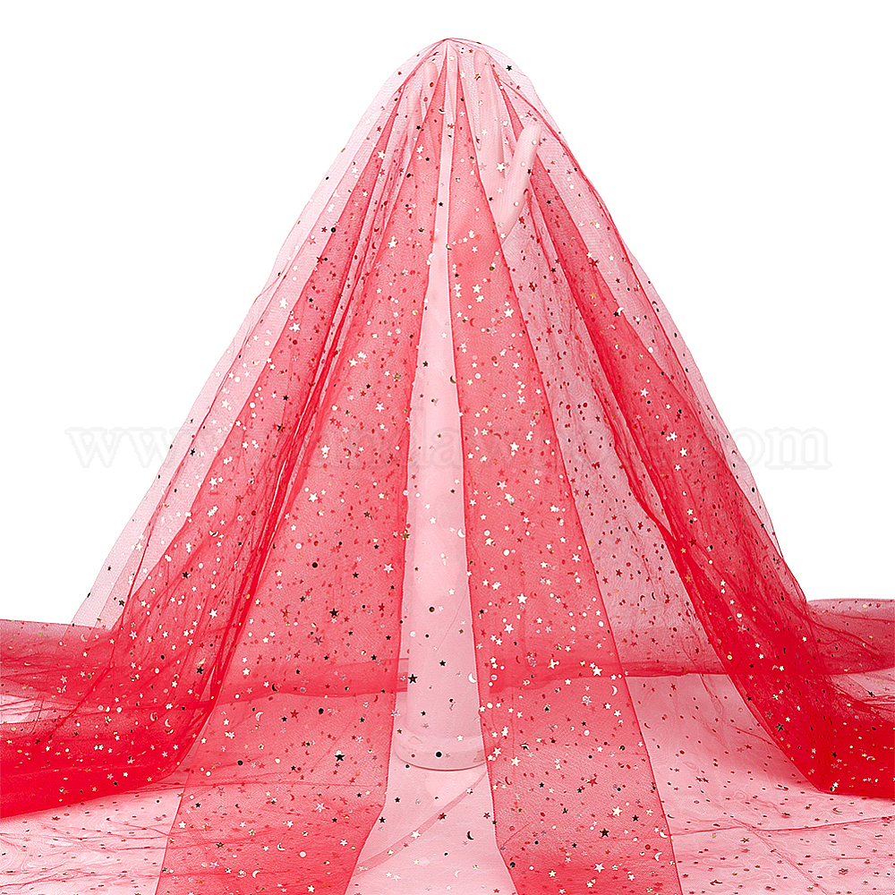 • Красный 3 ярдов полиэстеровой марлевой ткани, звезда и луна, красные, 1500x0.2 мм