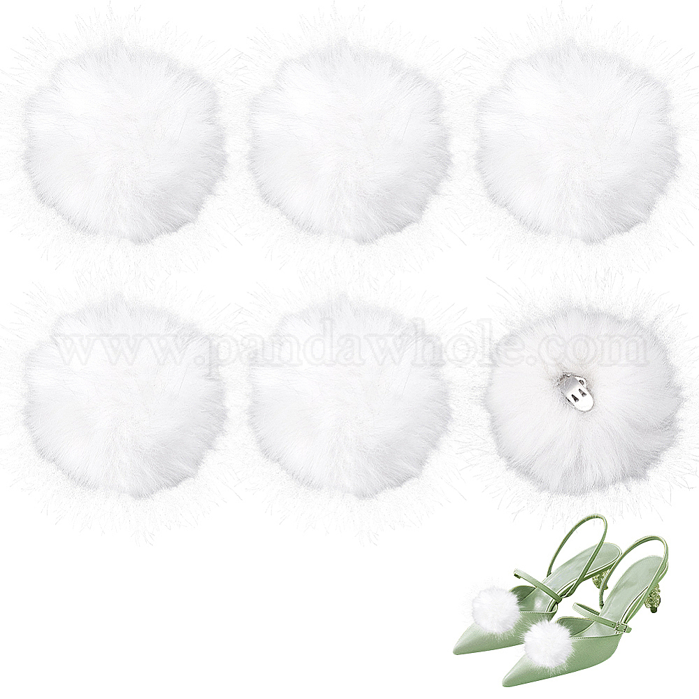 • Белый Помпон из волокна, для шапок обувь шарфы подвески на сумку аксессуары, с зажимами, белые, 50 мм