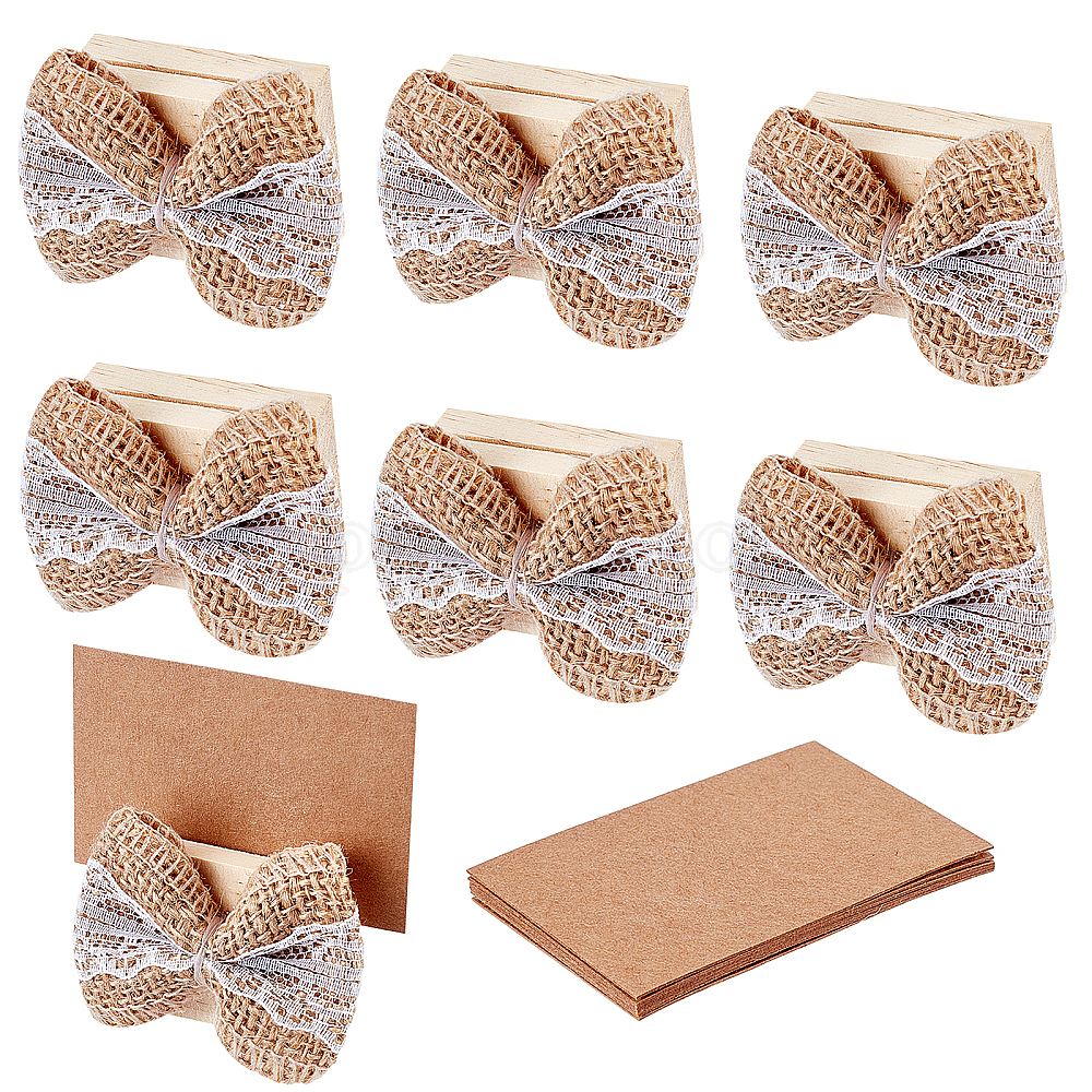 • Цвет Древесины 6 наборы деревянных держателей карточек, для памятки записки имя знак свадьба день рождения, бантом, деревесиные, 49x60x29 мм