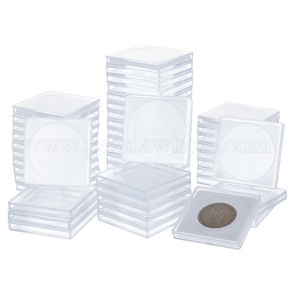 пластиковые квадратные монетницы: около 48x48x6.5мм, внутренняя подушка: 20 мм, 25 мм, 30 мм, 35 мм, 40 мм, 10 комплект.