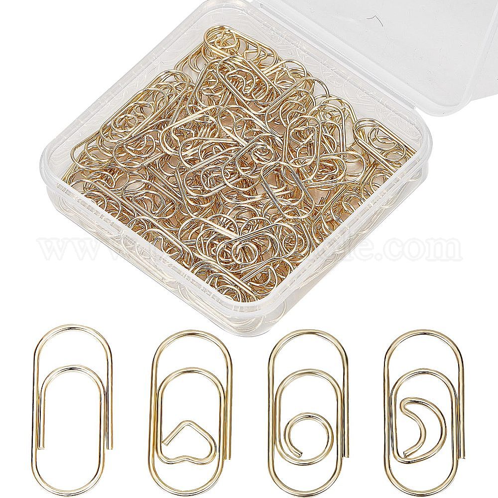 • Light Gold 100шт. 4 стили скрепки из углеродистой стали, клипсы для закладок, овал с круглым, луной и сердцем, золотой свет, 20x9x1 мм, 25 шт / стиль
