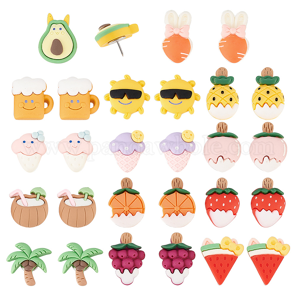 Летняя тема, непрозрачная смола, булавки для карт, железные канцелярские кнопки для фото, доска объявлений, солнце/кокосовая пальма/персиковое мороженое на палочке