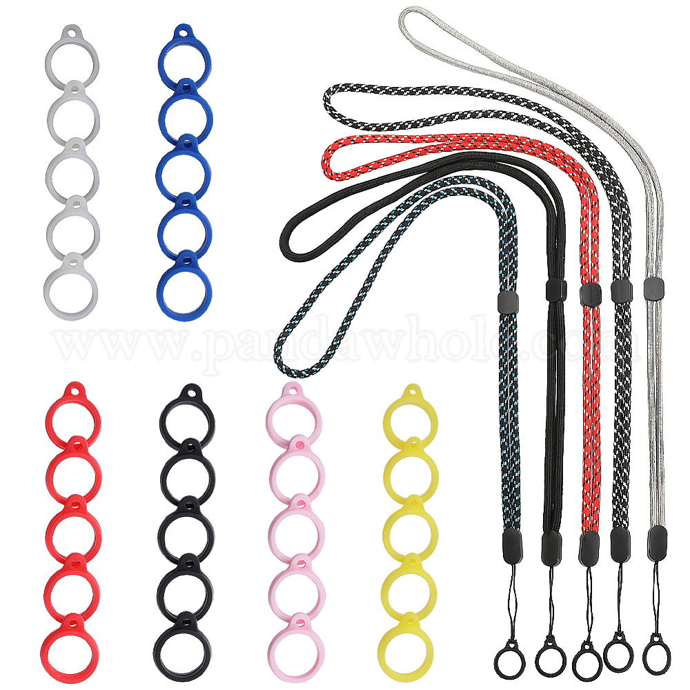 5шт 5 цвета полиэстеровый шейный ремешок, ремешок для шнурка с защитой от потери вейп-ручки, с пластиковой пробкой, силиконовые кольца и силиконовые подвески 36шт 6 цветов