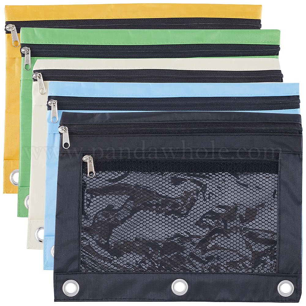 5шт 5 цвета сумка для ручек из ткани Оксфорд, сумка для канцелярских принадлежностей с двойной молнией, для аксессуаров для папок с 3-отверстиями