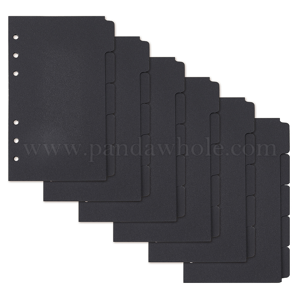 • Черный А6 5 листы бумага папка разделители, Вкладка индексной страницы для планировщика, блокнота и переплетных листов, прямоугольные, чёрные, 173x104x0.3 мм, отверстие : 5 мм