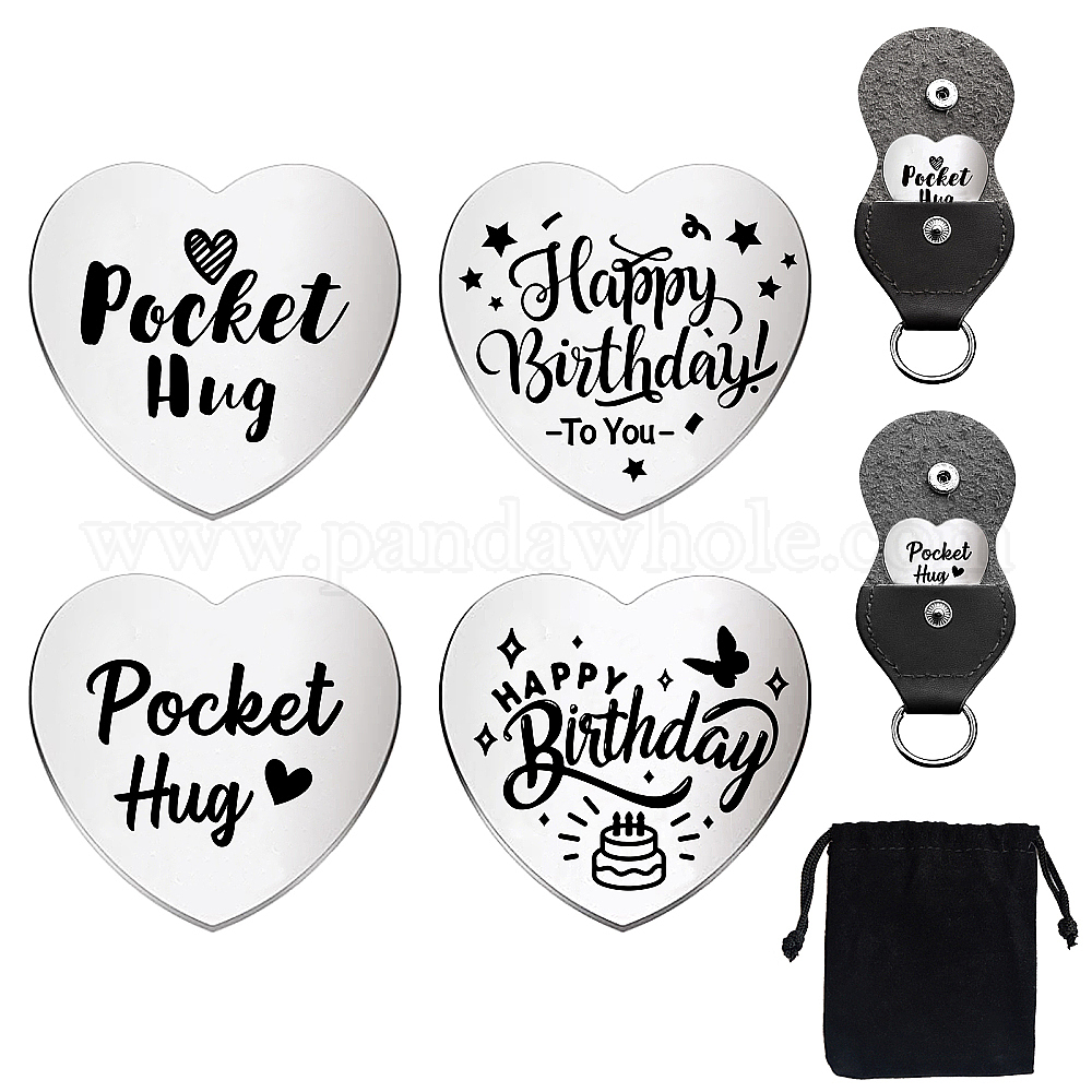 Набор памятных монет из нержавеющей стали с двусторонней гравировкой в виде сердца для лиц, принимающих решения, карманная монета для объятий, монета с вдохновляющей цитатой, с мешочком для хранения ключей из искусственной кожи
