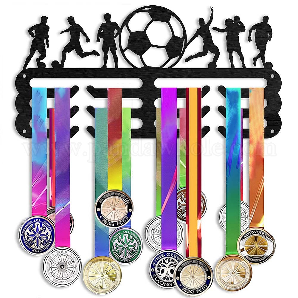 • Sports Вешалка для медалей из модного дерева, 3 линейная настенная стойка, с винтами и дюбелем, чёрные, Бег, 150x300x7 мм