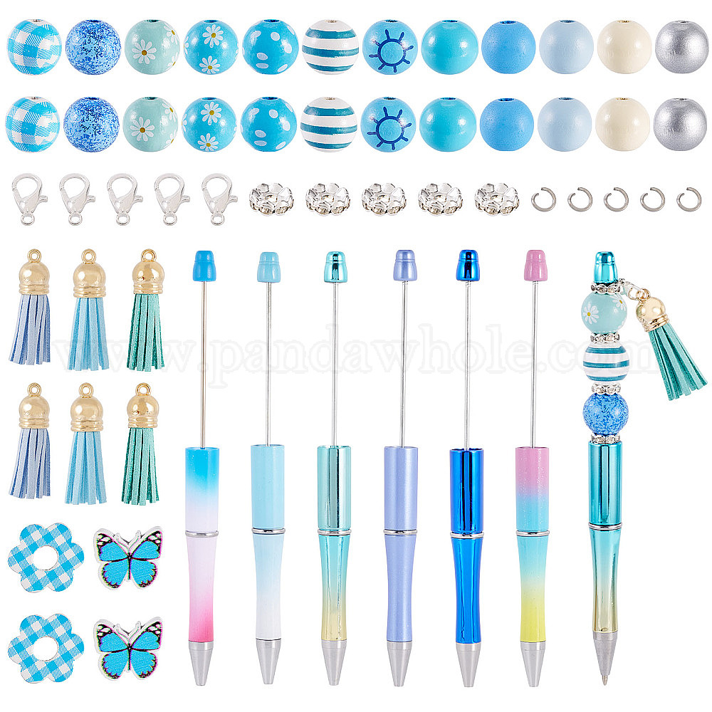 • Небесно-голубой Пластиковые шариковые ручки, шариковая ручка, с деревянных бусин, Латунные бусины со стразами , Сплав застежками когтя омара, 304 кольца прыжок из нержавеющей стали, голубой, 146~148x11.5~12 мм