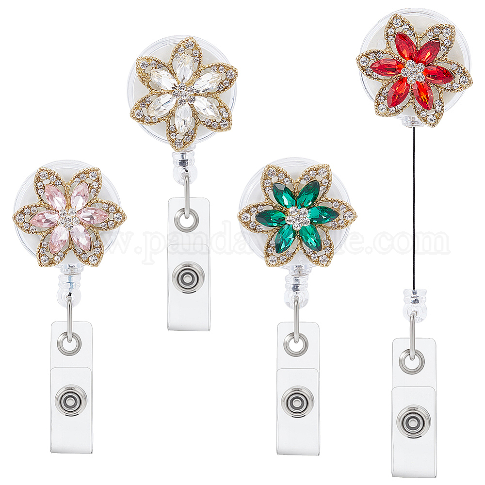 4шт. рулон со значком из цветочного сплава, выдвижной держатель бейджа из абс-пластика