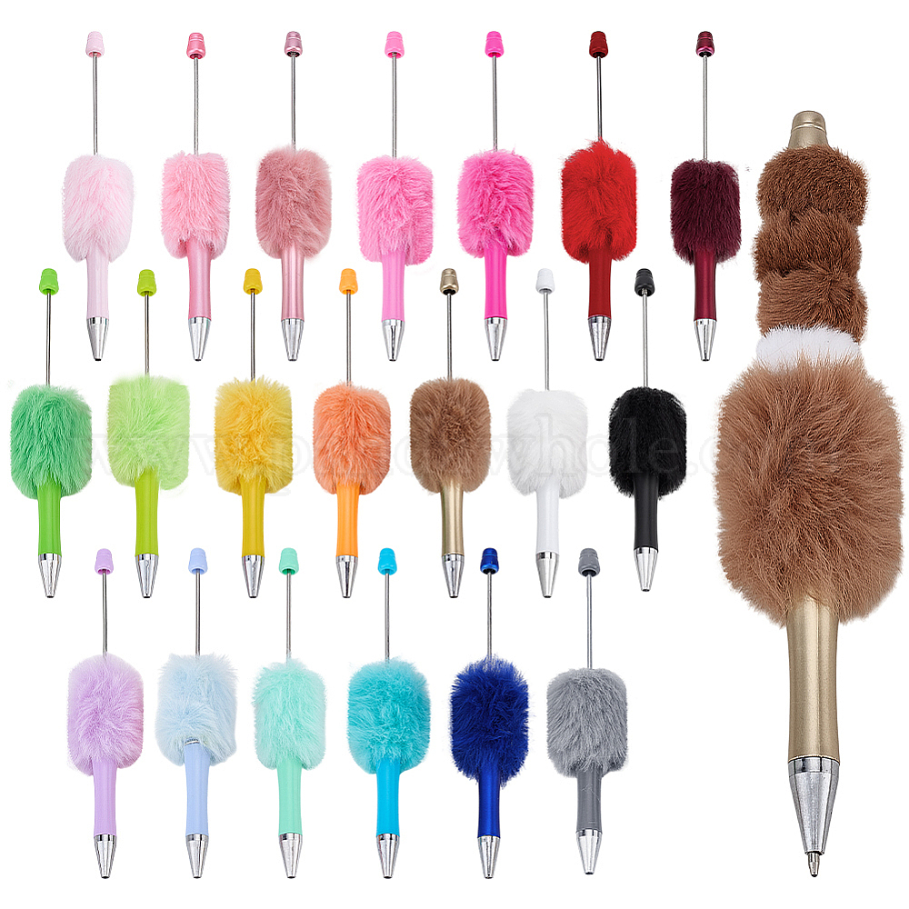 20шт. 20 цветные пластиковые ручки с бусинами, шариковая ручка, с плюшевым помпоном, для индивидуальной ручки с ювелирными бусинами
