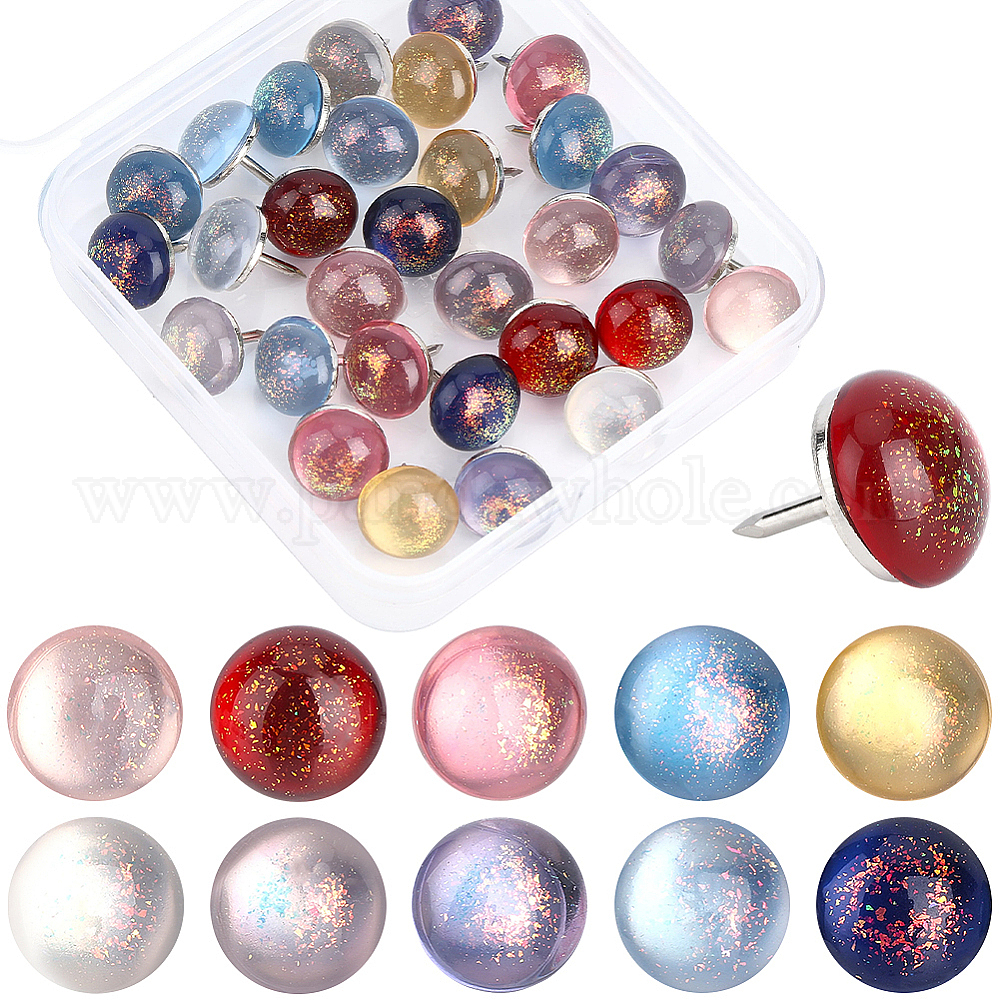 30 шт. 10 цвета железные канцелярские кнопки, полукруглый, с использованием смолы и золотой фольги