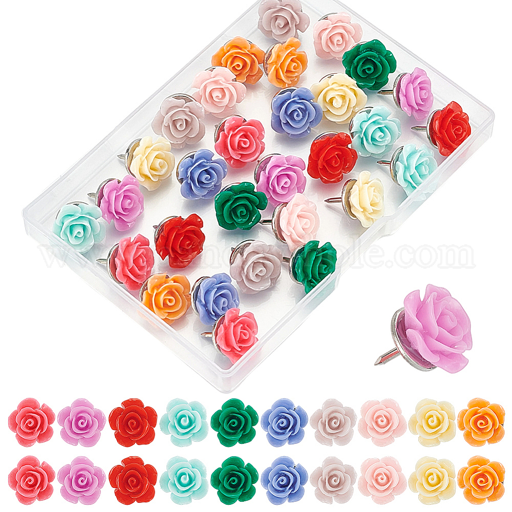 30 шт 10 цвета смоляные цветочные кнопки для рисования, с железными контактами