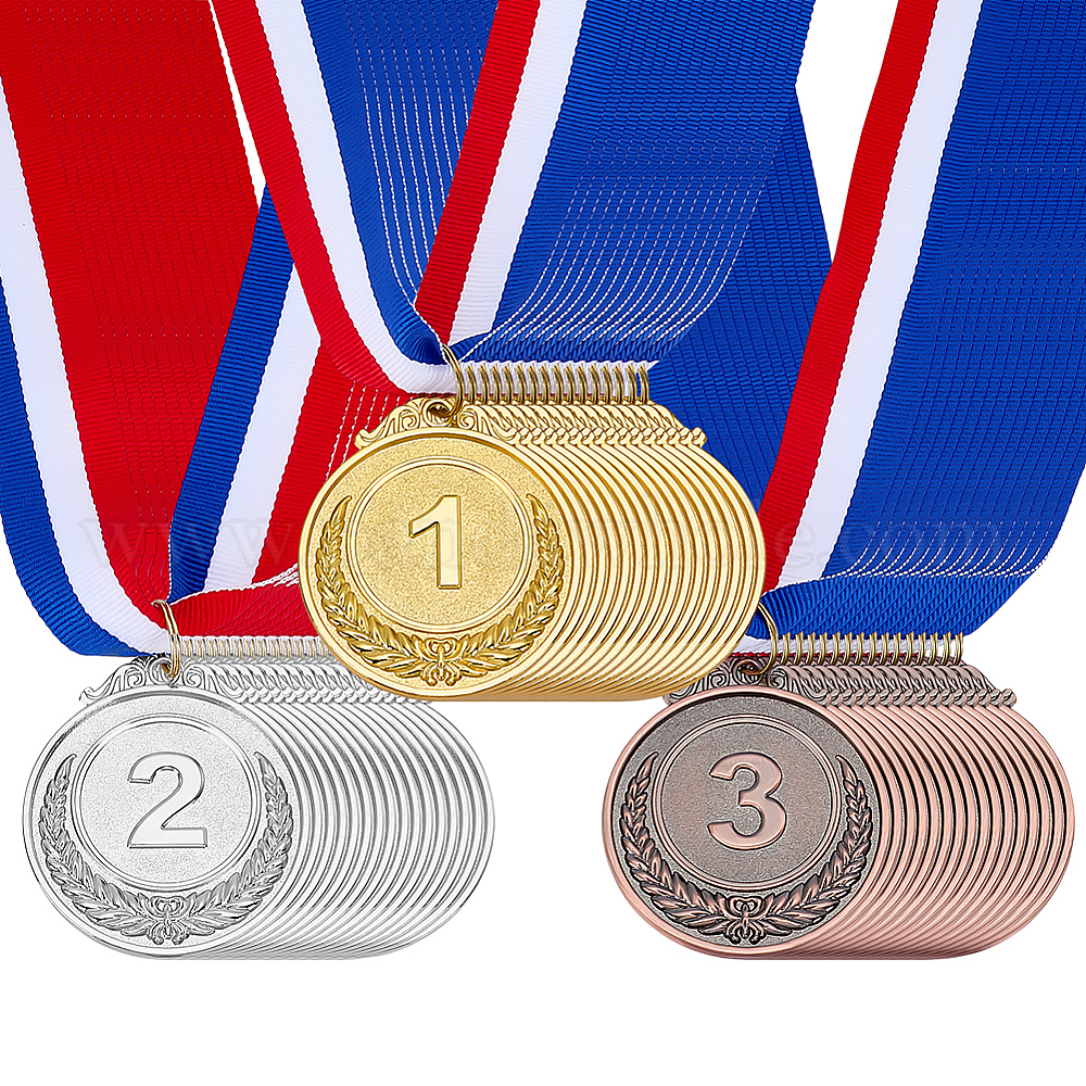 48шт 3 цвета цинковый сплав медали, с нейлоновым ремешком