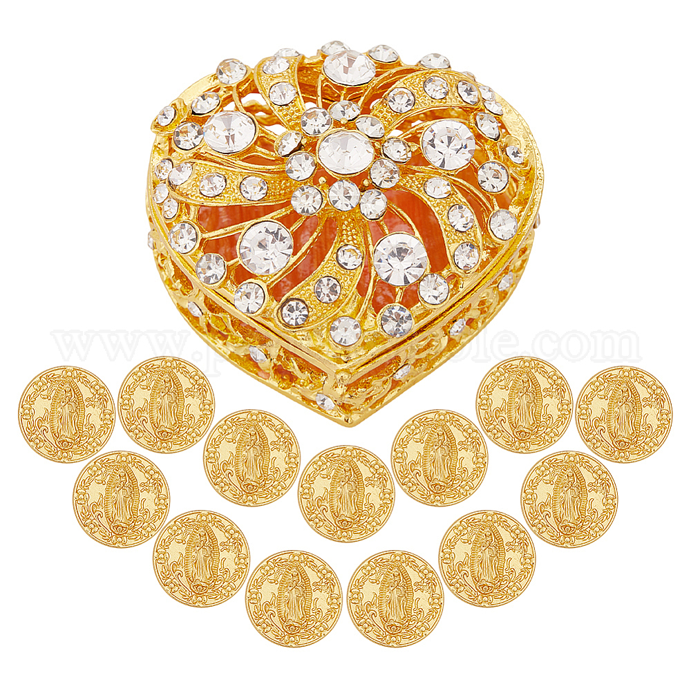 • Золотой 13шт. памятная монета с изображением Иисуса из цинкового сплава, с 1шт. декоративными шкатулками для ювелирных изделий в форме сердца из сплава с кристаллами и стразами, с магнитными застежками, золотые, 20x3 мм