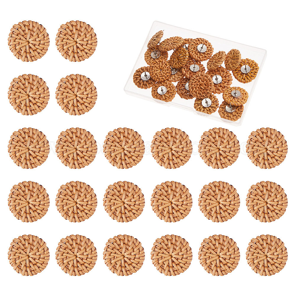 • Цвет Древесины Канцелярские кнопки из ротанга ручной работы, с железными контактами, платина, плоско-круглые, деревесиные, 14.8 мм