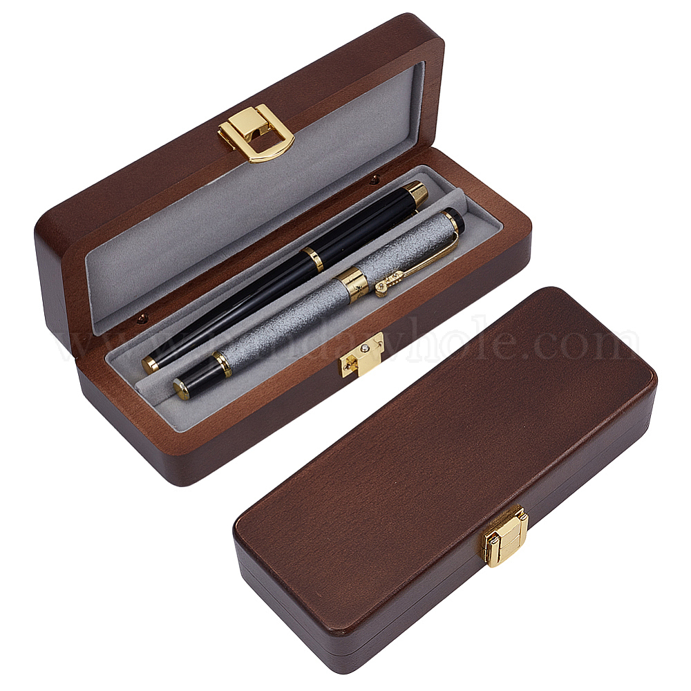 Прямоугольный деревянный футляр для хранения ручек с крышкой, со сплавочной фурнитурой
