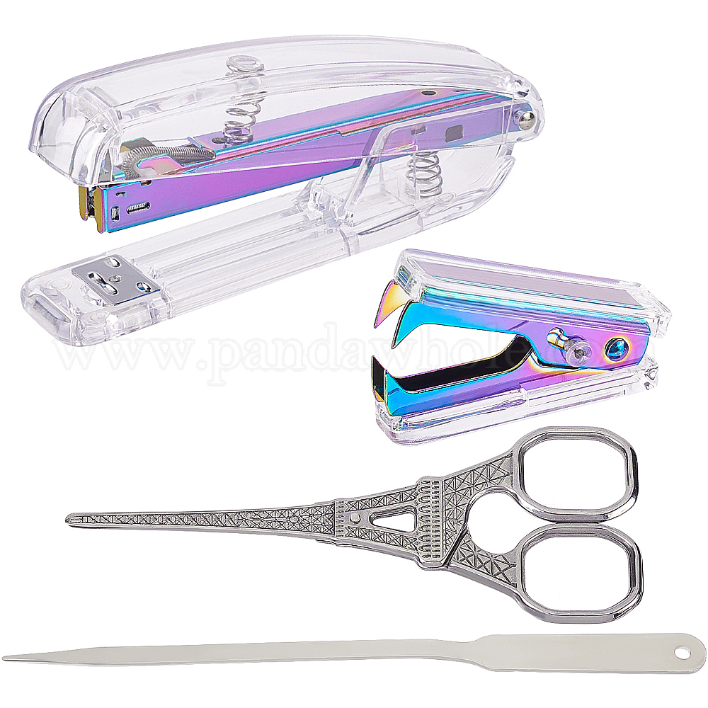Наборы офисных инструментов, в том числе: 1 съемник скоб из нержавеющей стали для ПК & 1 ножницы для ПК & 1 устройство для открывания конвертов для ПК, 1 офисный степлер для ПК