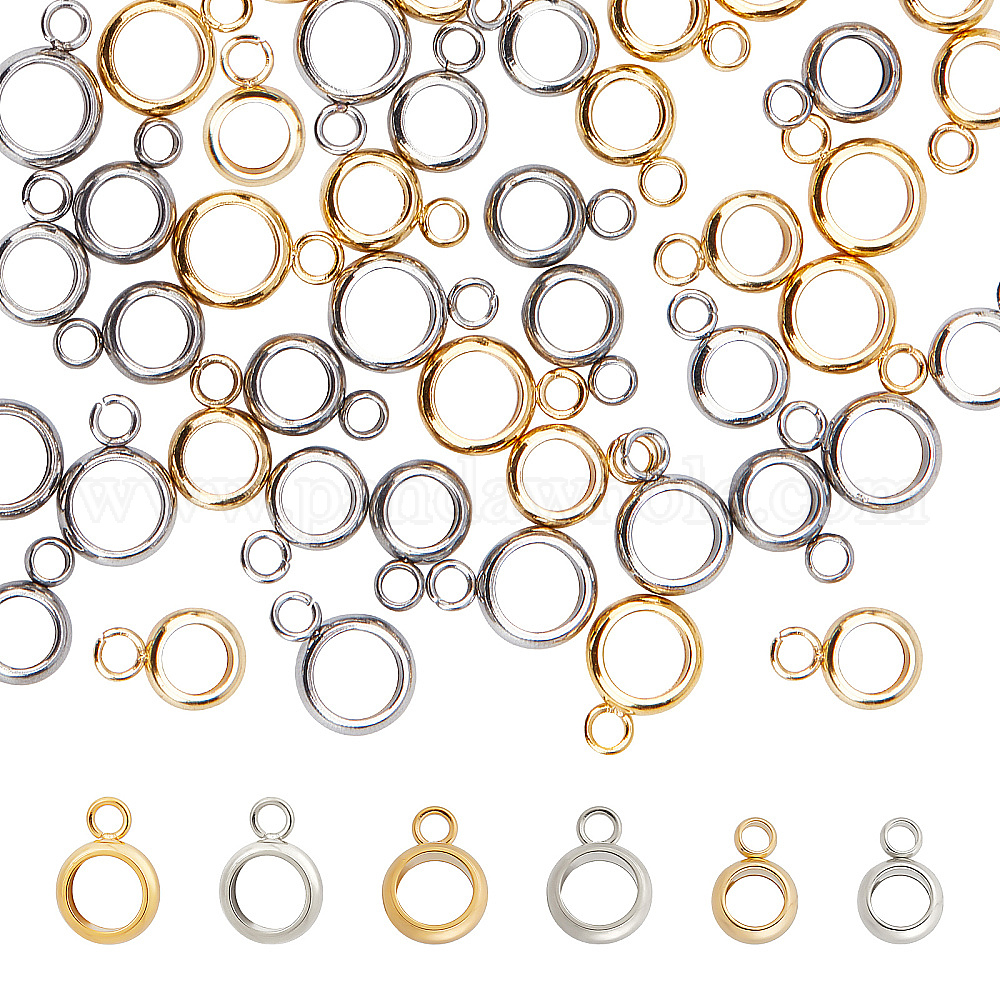• Золотой & Цвет Нержавеющей Стали 60шт 6 стиль 304 и 201 нержавеющая сталь трубчатые дужки, петля под залог, круглое кольцо, золотые и нержавеющая сталь цвет, 8.5~10x6~7x2~2.5 мм, отверстие : 1.8~2 мм, 10 шт / стиль