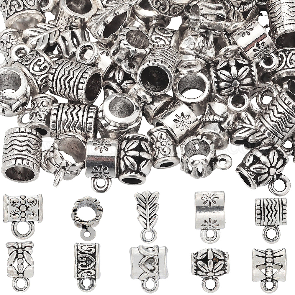 100шт 10 стиль тибетский сплав трубы поручни, петля под залог, цветок, сердце, лист, бабочка и колонна