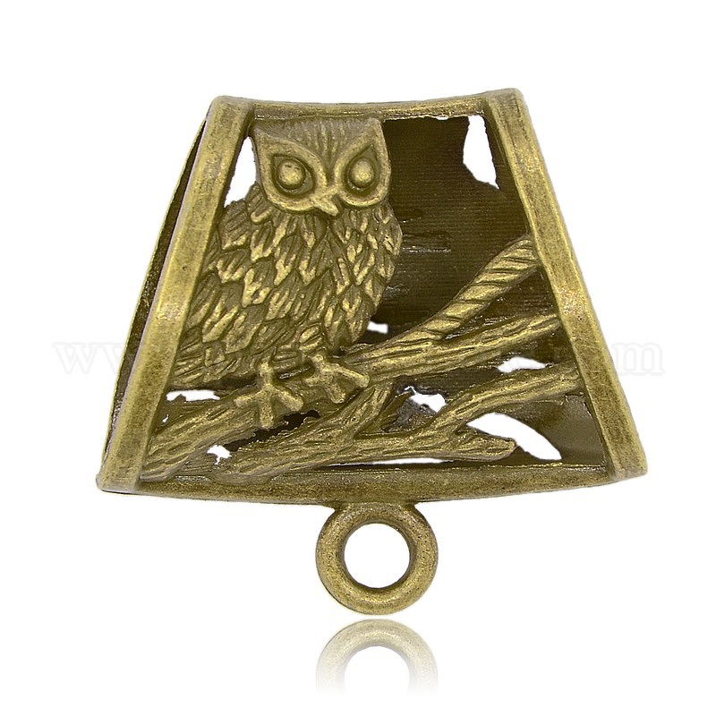 Филигранные поручни в тибетском стиле, петля под залог, шарф под залог бисера, трубка с совой рисунком, 38x39x17 мм, отверстие : 4 мм, внутренний диаметр: 13x25 мм