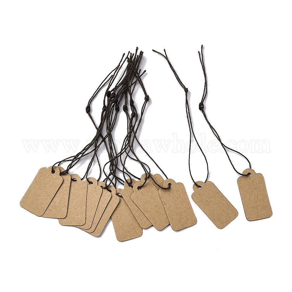 • Светло-коричневый 500 шт. крафт-бумага пустые ценники со шнуром, бирки, прямоугольные, загар, 3.05x1.55x0.03 см