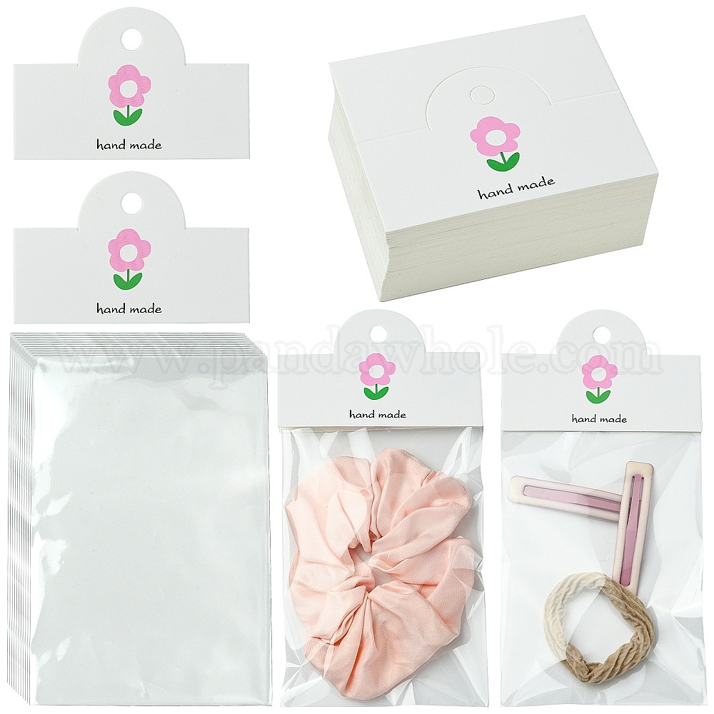 100шт. цветочные печатные бумажные складные карточки, упаковочная бумага картон с отверстием для подвешивания, прямоугольные, с 100 целлофановыми пакетами OPP