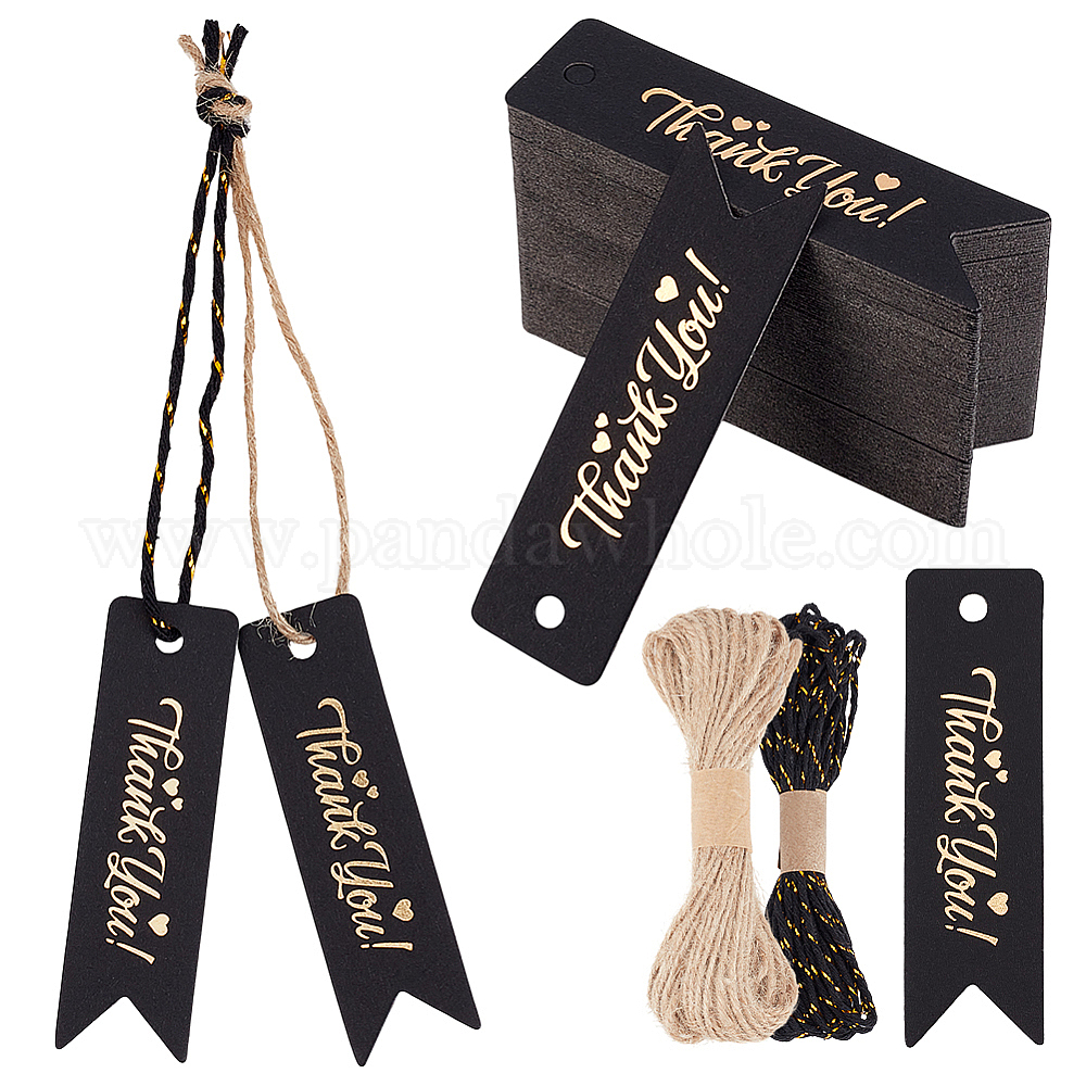 100шт. крафт-бумажные подарочные бирки с благодарностью, прямоугольные, с использованием хлопковых металлических нитей длиной 10м и джутового шнура длиной 10м.