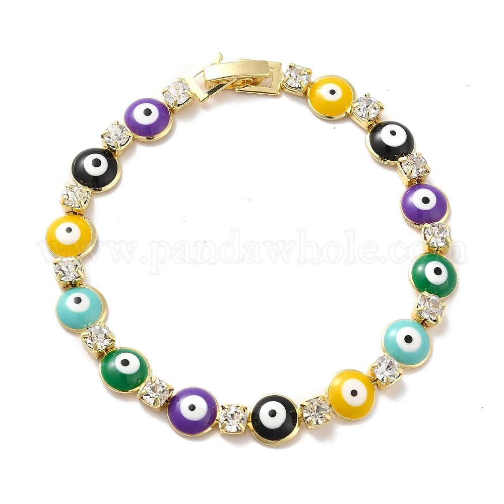 Железный браслет с плоскими круглыми и квадратными звеньями, эмалевый браслет от сглаза с прозрачным кубическим цирконием для женщин, золотые