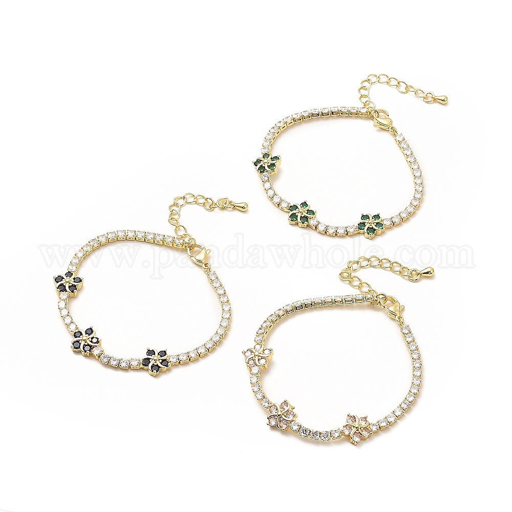 Браслет-цепочка из кубического циркония, цветочная стойка с покрытием из латуни для женщин с удлинителем цепи и застежками-лобстерами для женщин, без свинца и без кадмия, долговечный, реальный 18 k позолоченный