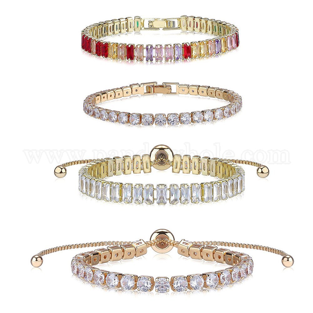 4 шт. 4 набор теннисных браслетов в стиле кубического циркония, браслеты-слайдеры с цепочками из латуни