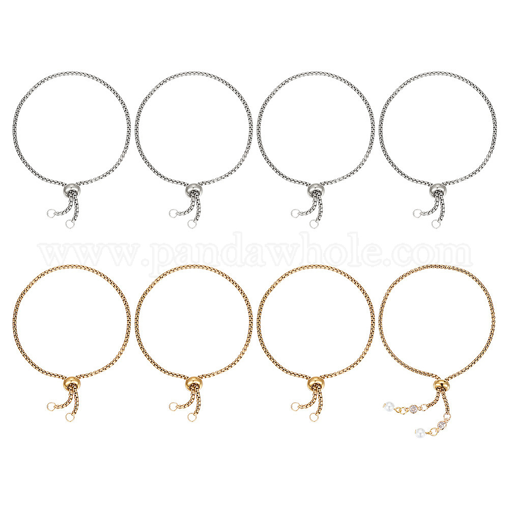 8шт. 2 стиль регулируется 304 набор браслетов-слайдеров из нержавеющей стали, цепочки-коробочки, штабелируемые браслеты
