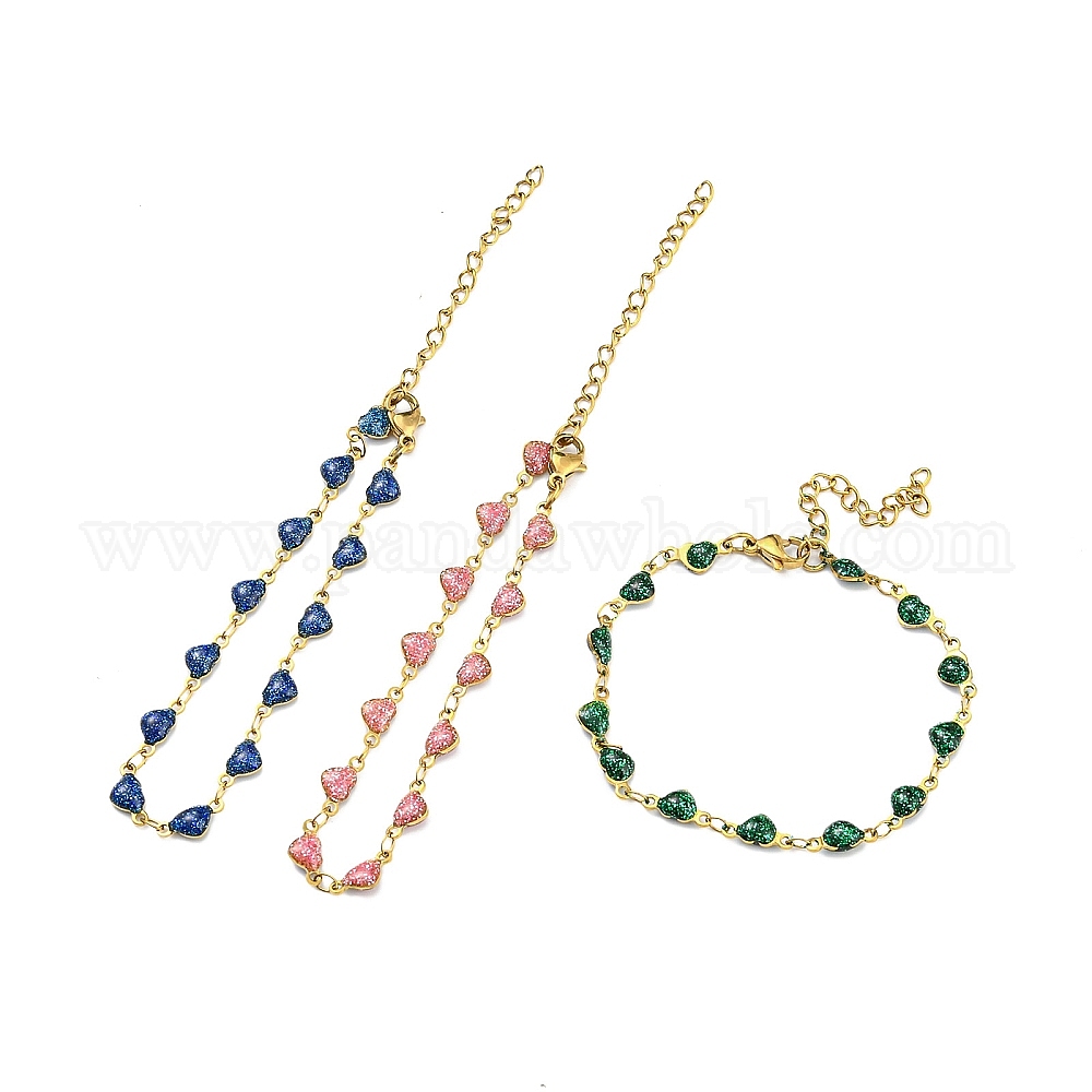 Браслет-цепочка с эмалированным сердцем, PVD вакуумное покрытие золото 201 браслет из нержавеющей стали