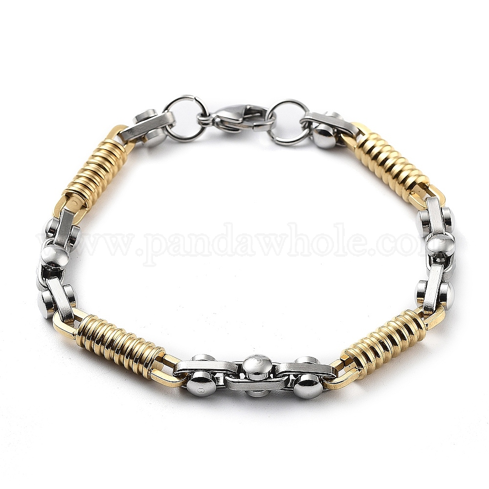 • Золотой & Цвет Нержавеющей Стали Вакуумное покрытие pvd 201 браслет из звеньев цепи из нержавеющей стали, 304 из нержавеющей стали пряжки, золотые и нержавеющая сталь цвет, 8-5/8 дюйм (22 см)
