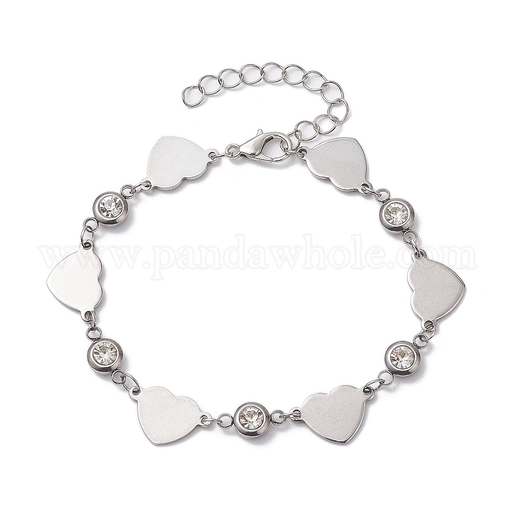 Браслет-цепочка из нержавеющей стали с звеньями сердца и фианитами