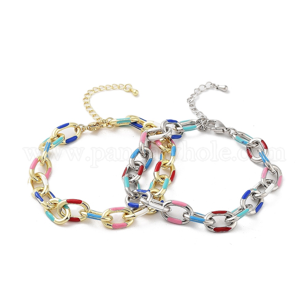 Латунные кабельные цепи браслеты, с разноцветной эмалью,